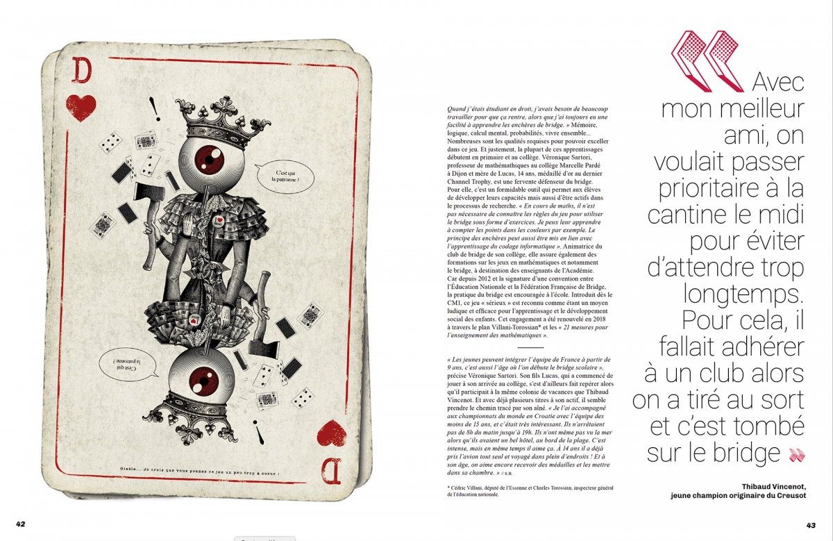 Réalisation d’illustrations pour un article sur le bridge dans Sparse magazine.